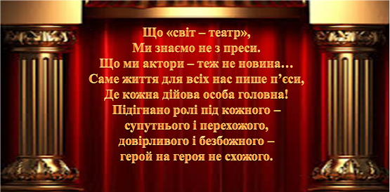 На цій сторінці ви можете знайти сценарії як авторські, так і запозичені, які ми спробували на своїй шкільній сцені. Сподіваюсь Вам теж вони сподобаються, і Ви їх використаєте у своїй роботі.